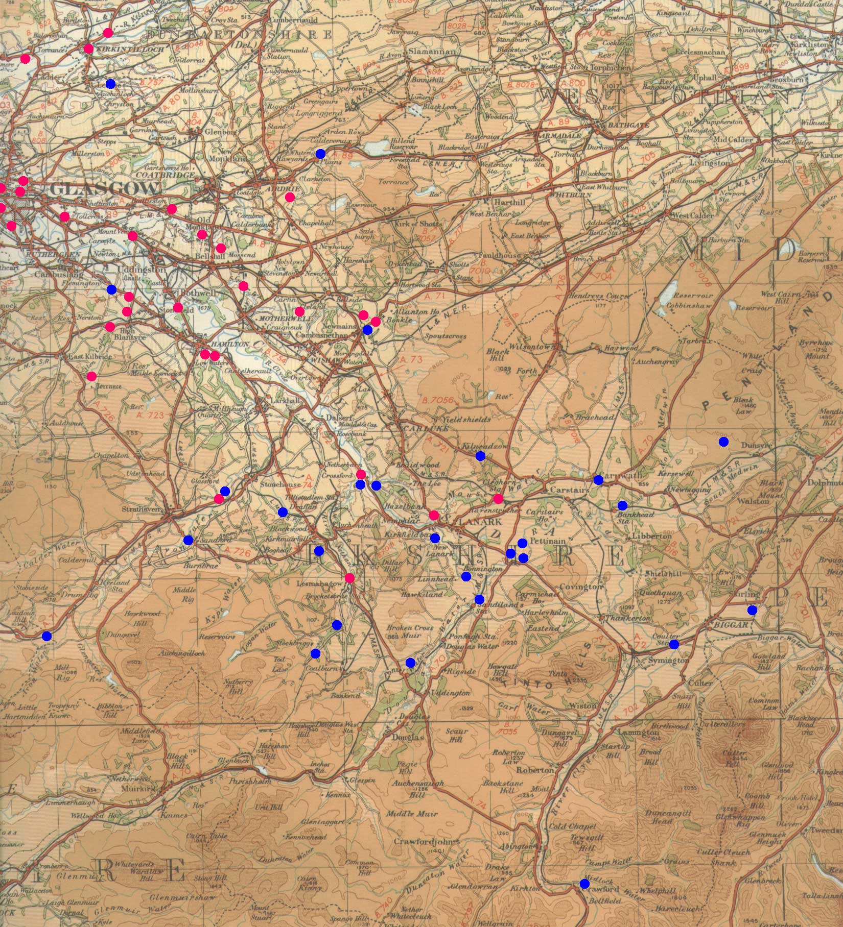 Map based on 1/4" OS map of 1936. With thanks to Ordnance Survey